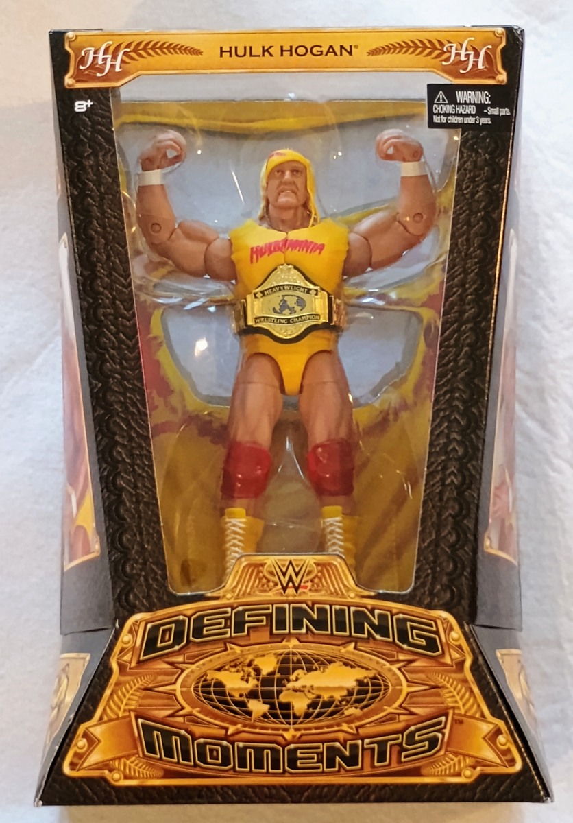 This Mattel WWE Defining Moments figure is of the icon — Hulk Hogan! The figure is wearing his traditional red and yellow gear as seen in the WWE and WCW.